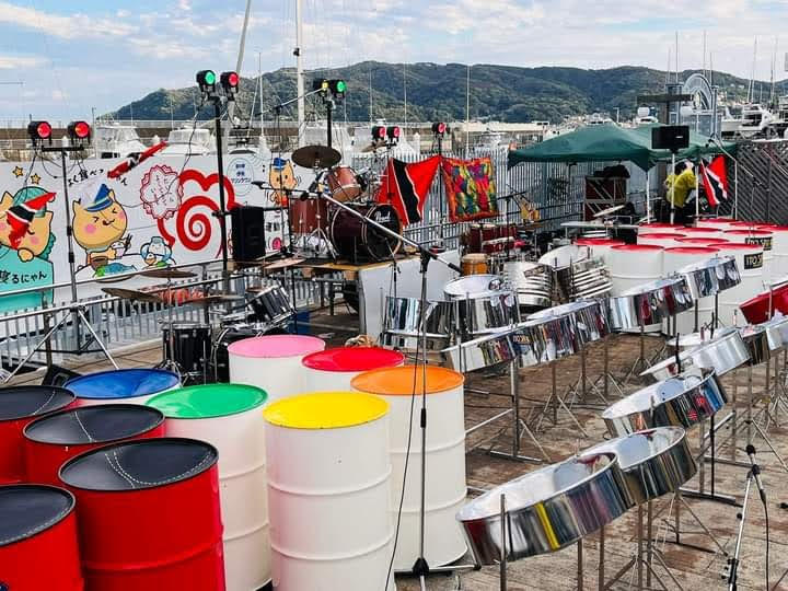このスティールパン文化と日本を結びつけてきたのが、マニッシュです。 1990年代、宮崎県に大型リゾート施設「シーガイア」が誕生しました。施設内の室内プールは「カリブの海」をイメージして設計され、その空間演出の一環として、本場トリニダード・トバゴからスティールパンバンドが招かれました。マニッシュはその来日メンバーの一人として日本に渡り、約1年間にわたり演奏活動を行いました。本場の演奏スタイルと文化を日本の観客に紹介し、多くの人にスティールパンの魅力を伝えてきました。